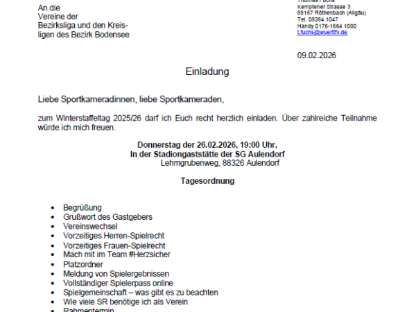 wir heißen Sie ganz herzlich willkommen auf der Homepage des Bezirk Bodensee. Hier erhalten Sie alle wichtige Informationen über den Spielbetrieb im Bezirk und im Württembergischen Fußballverband. Des Weiteren finden Sie hier die Kontaktdaten unserer Funktionäre und werden über alle wichtigen Termine informiert.