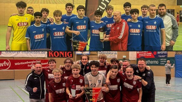 News im Bezirk Schwarzwald/Zollern 12.01.2026 Tolle Stimmung und gefüllte Ränge in Rosenfeld Hallenbezirksmeisterschaften Juniorinnen und Frauen 06.01.2026 Auswahlturniere 🌟 Abschluss Resümee – 32. Internationales Auswahlturnier 04.01.2026 ⚽ Bezirksturnier der E Junioren – Jahrgang 2015 04.01.2026 Auswahlturniere 🔥 Reutlingen krönt sich nach einem dramatischen Finale zum Turniersieger 03.01.2026 Talentförderung TFG Schwarzwald/Zollern – Kampfgeist, Emotionen und ein versöhnlicher Abschluss 03.01.2026 Auswahlturniere Unsere heimischen Stützpunkte – ein Vormittag voller Gegensätze Facebook Instagram YouTube News im wfv 24.02.2026 Mehr Bewegung für Kinder Neu aufgelegt: Der Bewegungspass für Bambini ist ab sofort als wfv-Fußballedition verfügbar Unser beliebter Fußball-Bewegungspass kann ab sofort wieder kostenlos bestellt werden. Nur solange der Vorrat reicht. 23.02.2026 A- und B-Junioren Zwei Premieren-Sieger, viel Tempo: Final Four ermittelt Futsal-Meister der Junioren Im Rahmen des Sparkassen JuniorCup wurden am Samstagabend auch die Final Four-Turniere der A- und B-Junioren ausgetragen. Ganz oben standen die Teams aus Böblingen und Holzschwang. 23.02.2026 Jugendfußball Grande Finale im Sparkassen JuniorCup: Württemberg feiert seine Hallenmeister Fünf Wettbewerbe, fünf Turniersieger: Der Sparkassen JuniorCup 2025/26 fand am Wochenende in Ehningen statt. Das sind die Gewinner-Teams.