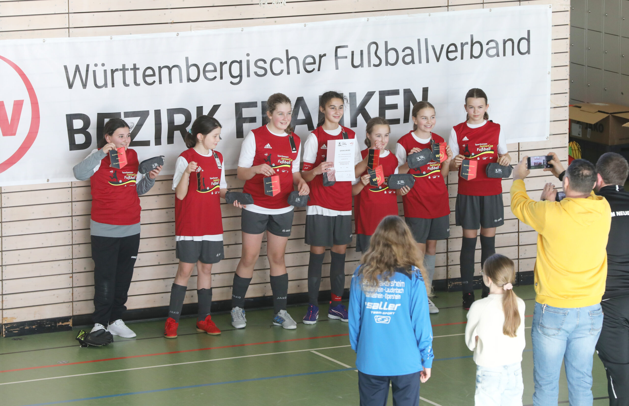 Am Wochenende wurden in den Helmbundhallen in Neuenstadt die Bezirksendrunden der verschiedenen Altersklassen des Sparkassen JuniorCup (E- bis C-Junioren und D- bis B-Juniorinnen) und die Hallenmeisterschaft (A- und B-Junioren) im Bezirk Franken ausgetragen.