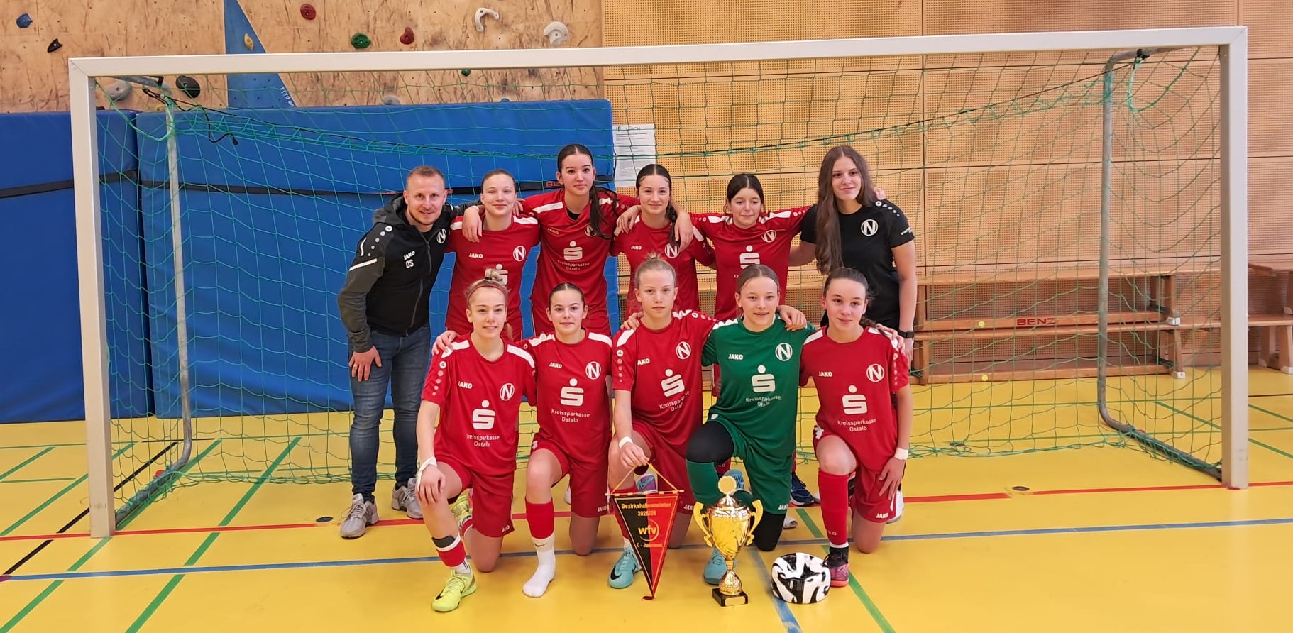 Am Samstag, 24.1.26 fanden in Lorch die Hallenbezirksmeisterschaften der C-Juniorinnen statt. In eine Endspiel besiegte der 1.FC Normannia Gmünd die Mädels aus Ellwangen mit 4:2 Toren. Beide Mannschaften des Endspiels vertreten den Bezirk bei der WFV-Verbandsvorrunde am WE 7.2./8.2.26. Dazu wünschen wir beiden Mannschaften viel Glück.