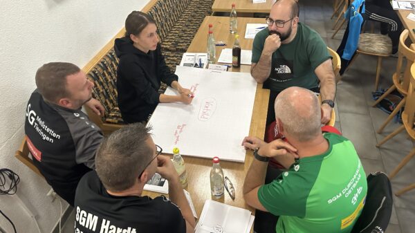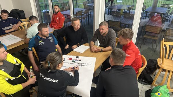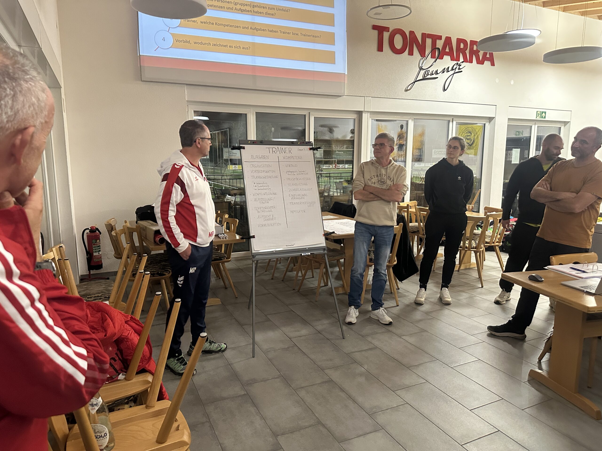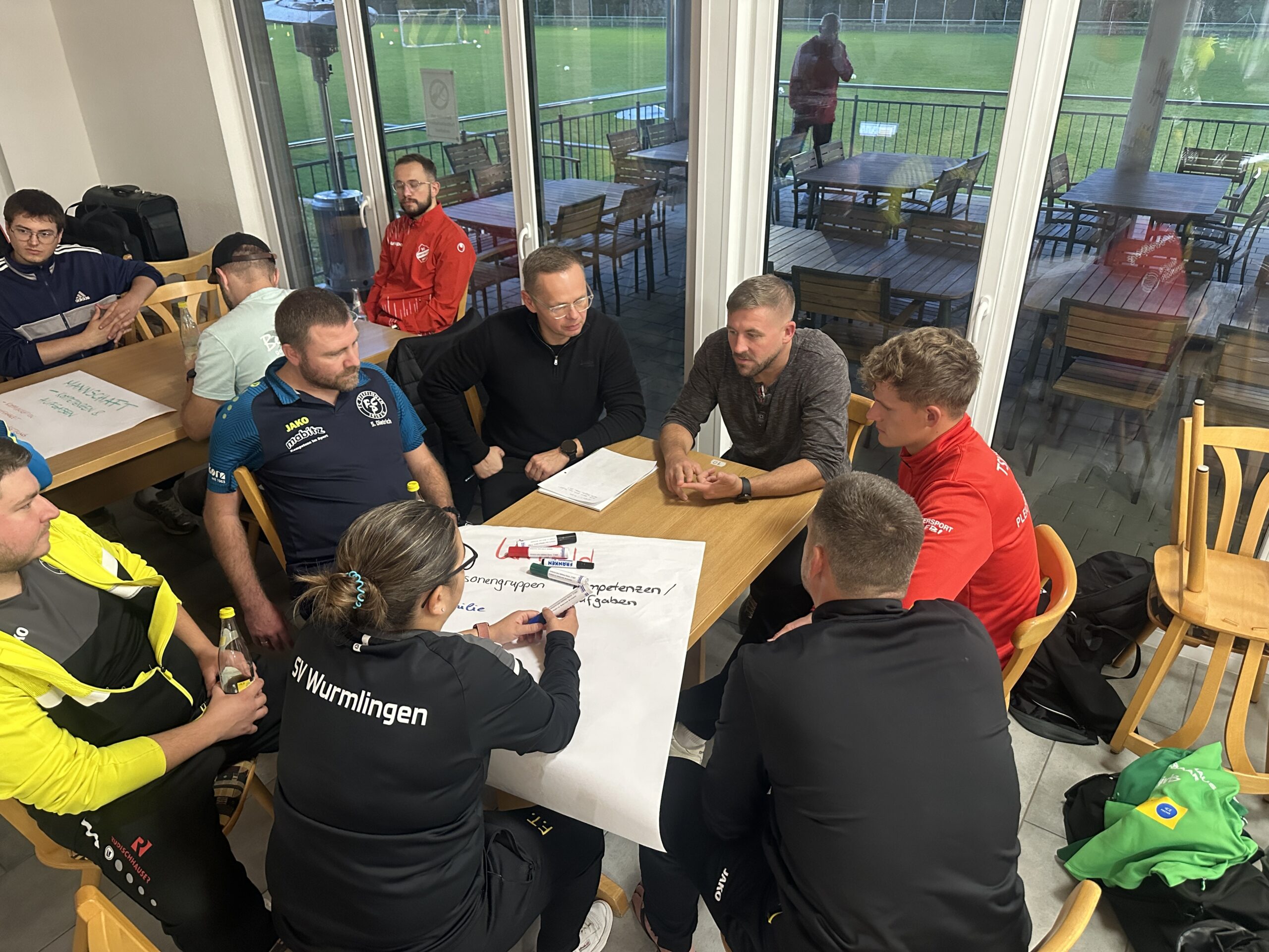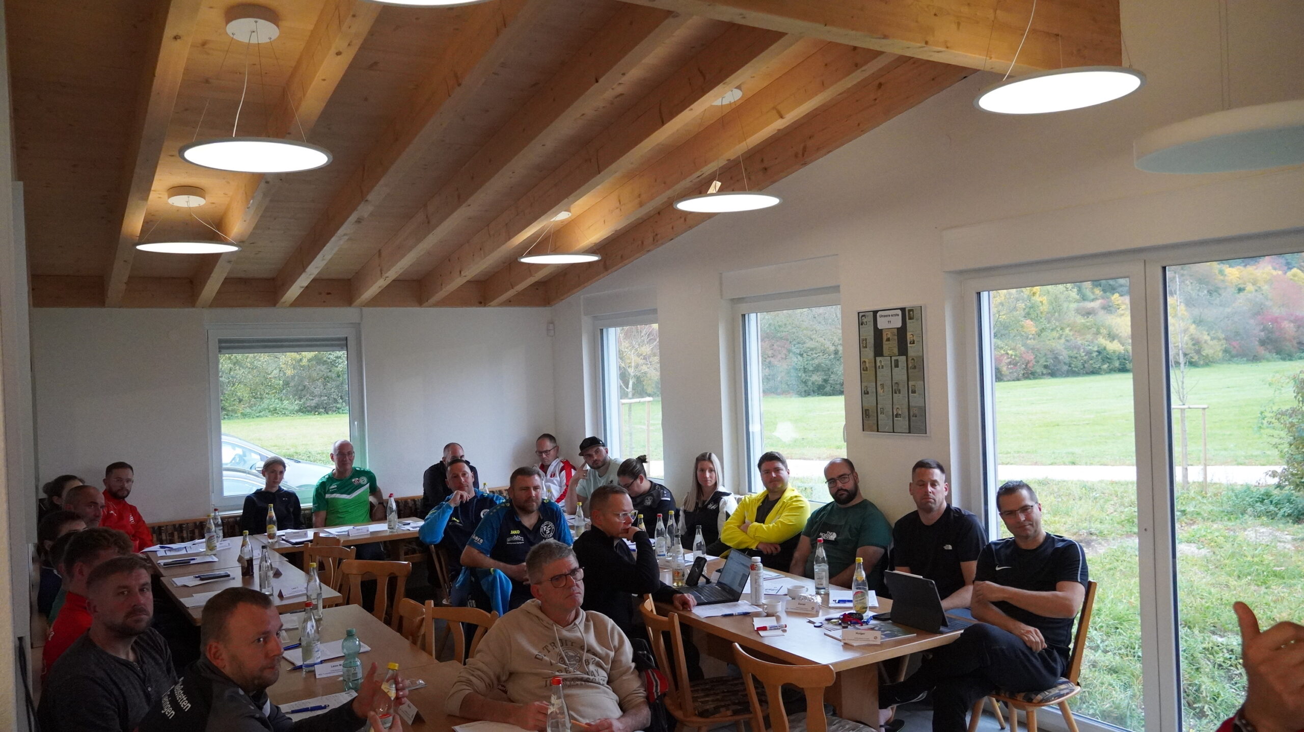 Die Ausbildung erstreckte sich über zwei Monate, vom 8. Oktober bis zum 29. November 2025, und fand beim SV Wurmlingen statt. Neben digitalen Lernphasen standen vier Präsenztage auf dem Programm – am 17./18. Oktober sowie am 14./15. November. Das wfv-Lehrteam mit Jürgen Fischer (Grüningen), Dietmar Anders (Donaueschingen) und Georg Müller (Dunningen) vermittelte praxisnah die Grundlagen der Trainertätigkeit. Müller übernahm zusätzlich die Rolle des Bezirks-Schulungsleiters und war an zwei Präsenztagen selbst als Referent aktiv.