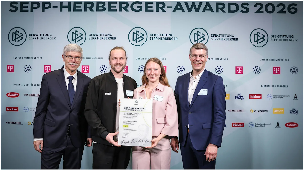 Bei der Verleihung der Sepp-Herberger-Awards in der Wolfsburger Autostadt hat der 1. FC Heidenheim 1846 am Montagabend den 2. Platz in der Kategorie „Schule und Verein“ belegt – und damit ein starkes Spotlight auf ein Thema gerichtet, das dem Klub besonders am Herzen liegt: mehr Bewegung für Kinder im Schul- und Kita-Alltag. Der Preis wurde den Heidenheimern im Beisein von wfv-Präsident Matthias Schöck verliehen, der seit November auch DFB-Vizepräsident ist.