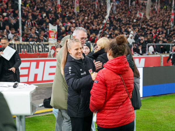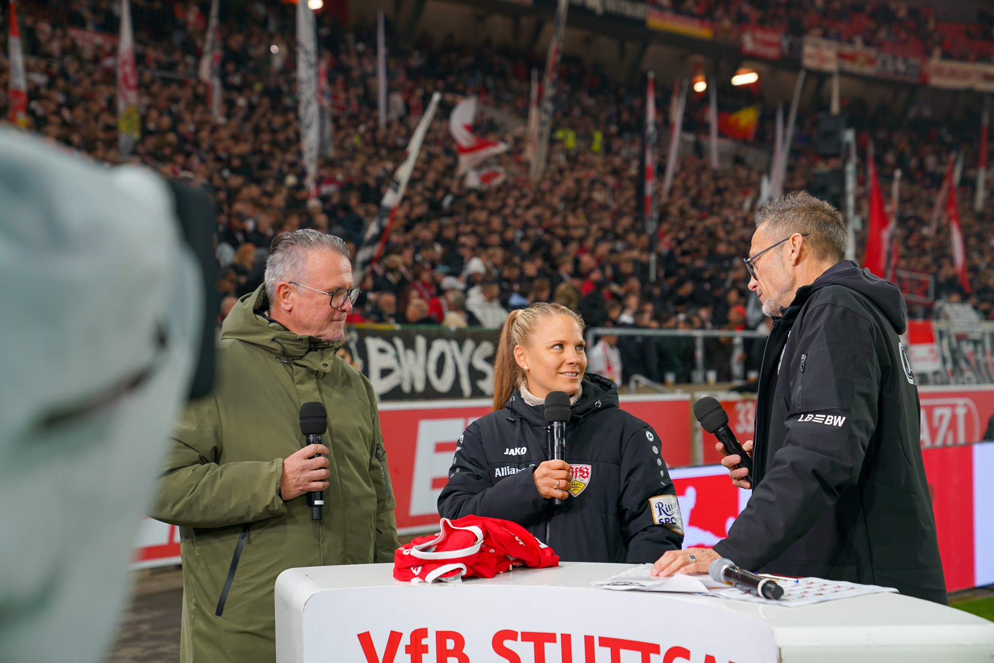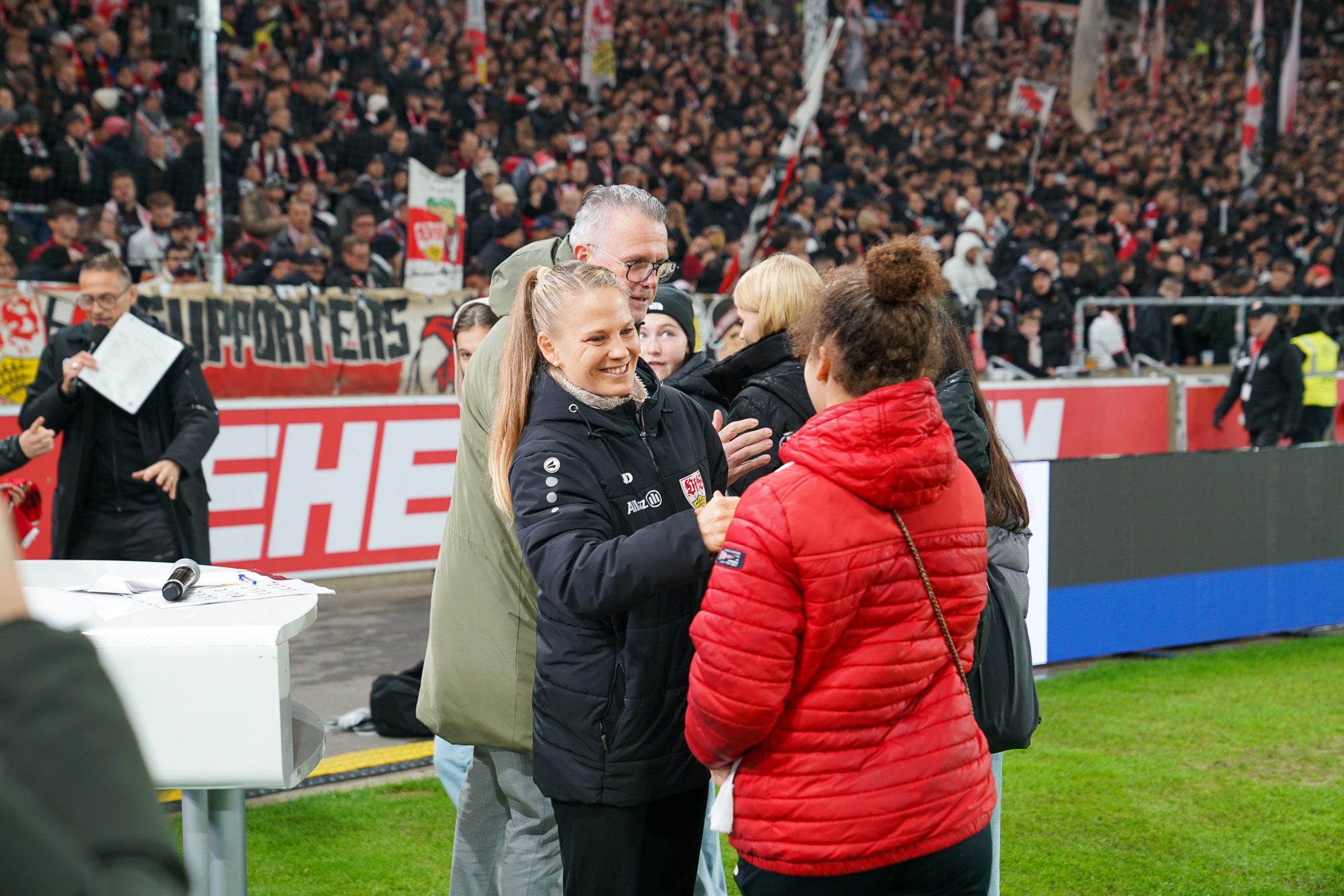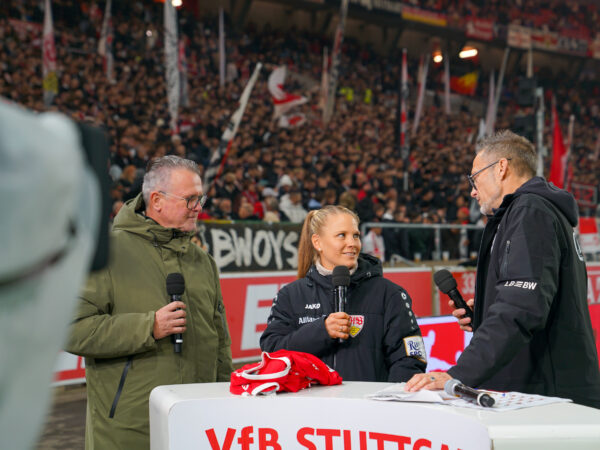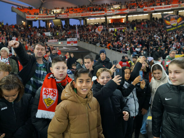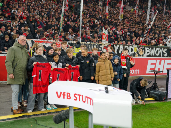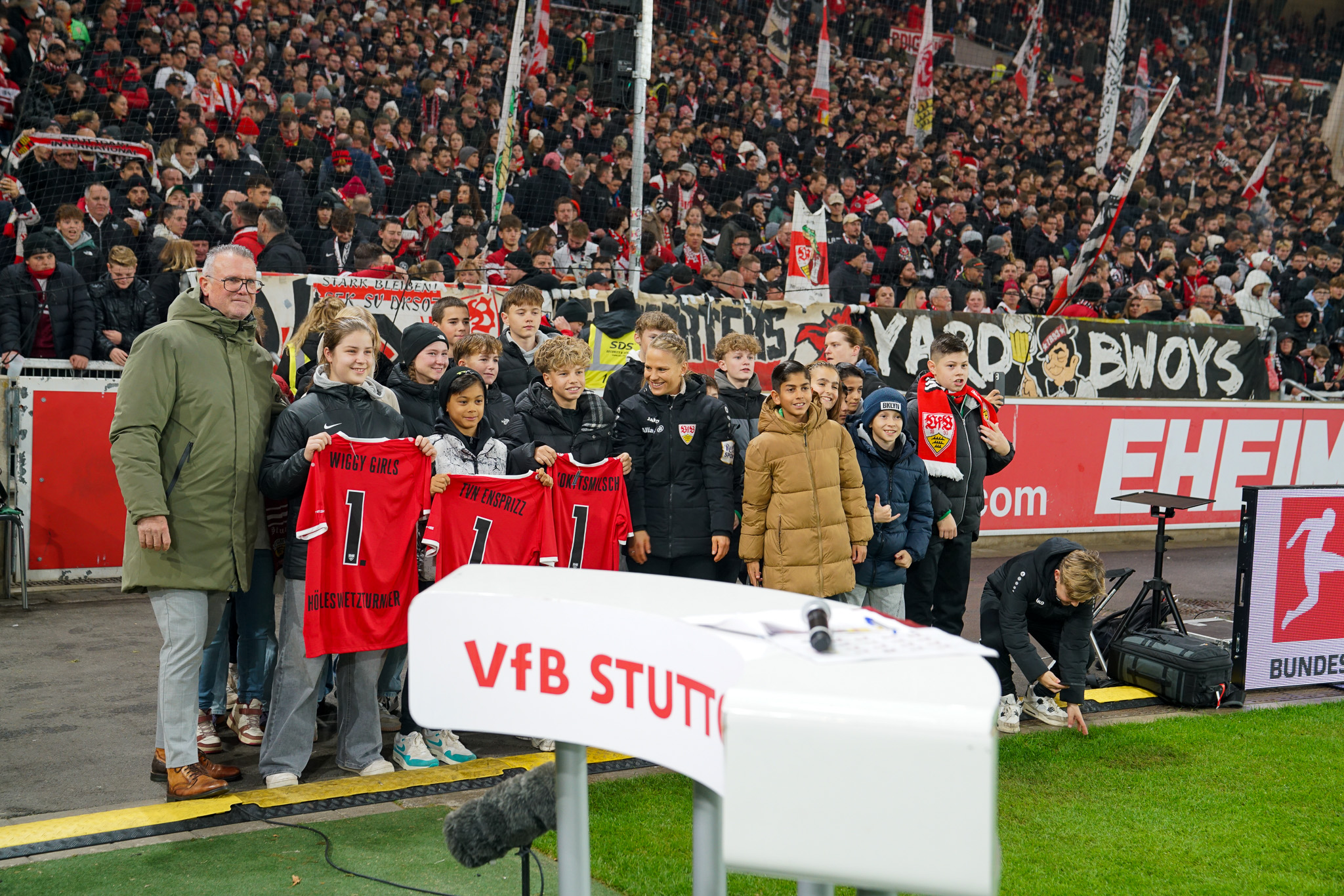 Großer Auftritt für die besten Teams des Höfleswetz-Turniers: Kurz vor dem Anpfiff der Bundesligapartie des VfB Stuttgart gegen den FC Augsburg wurden die drei Siegermannschaften direkt am Spielfeldrand der MHP-Arena ausgezeichnet.