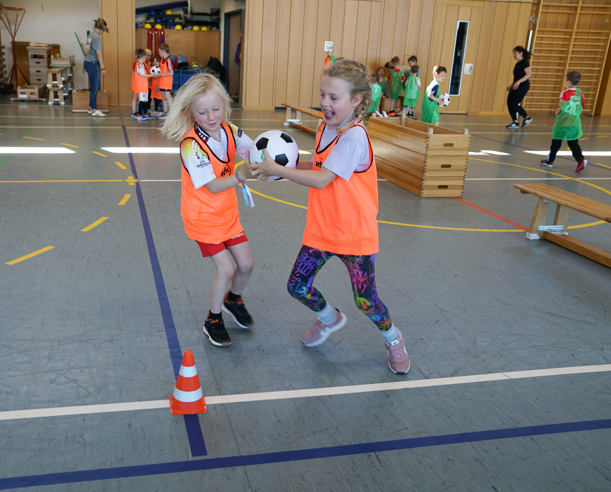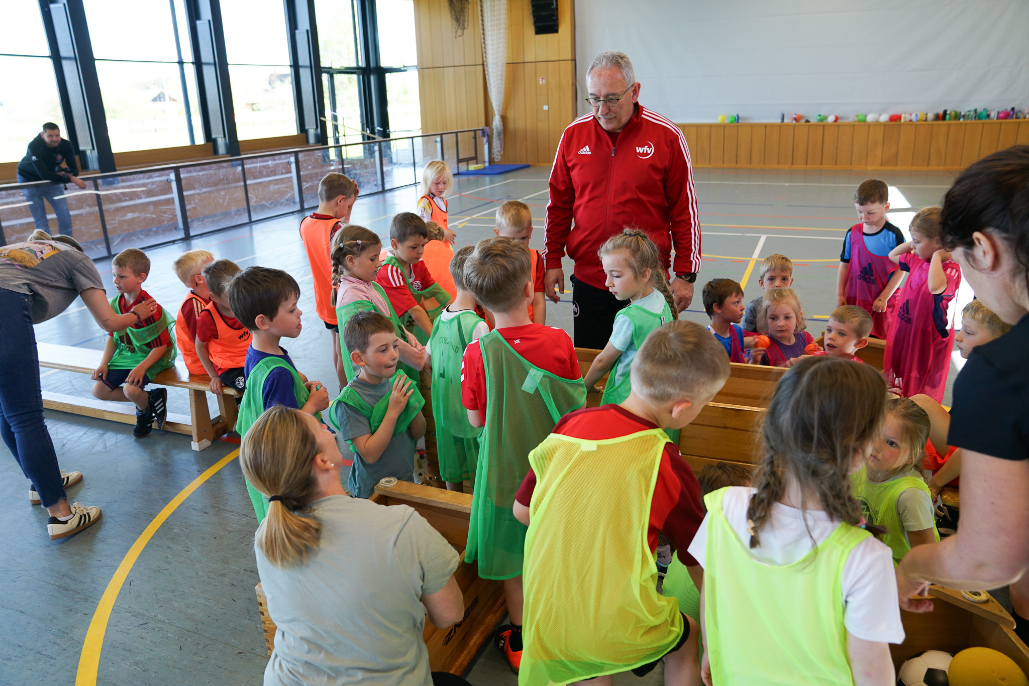 Ein gelungener Auftakt fand in Hardt statt: In der Arthur-Bantle-Halle wurde eine der ersten Fortbildungen mit ca. 30 Kindern der Katholischen Kindertagesstätte St. Elisabeth durchgeführt. Geleitet wurde die Fortbildung von Georg Müller aus dem wfv-Lehrteam, der mit viel Engagement und Fachwissen durch das Programm führte. Unterstützt wurde er von den Erzieherinnen der Einrichtung, die aktiv in die Übungen eingebunden waren und so wertvolle Impulse für ihre pädagogische Arbeit mitnehmen konnten. Im Mittelpunkt standen einfache Bewegungsformen mit verschiedenen Bällen und Luftballons, die sich leicht in den Kindergartenalltag integrieren lassen.