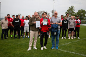 Manchmal sind es nicht Tore oder spektakuläre Spielzüge, die im Fußball besonders in Erinnerung bleiben, sondern Momente, in denen Haltung gezeigt wird. Benedikt Fischer von der SVGG Hirschlanden-Schöckingen hat im März für genau solch einen Moment gesorgt und wurde nun als BLEIB FAIR-Monatssieger März ausgezeichnet. Am Dienstagabend fand auf dem Sportgelände in Hirschlanden die offizielle Ehrung im Kreis der Mannschaft und Verantwortlichen statt.