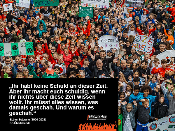 Der Erinnerungstag im deutschen Fußball ist eine Erfolgsgeschichte für Mitmenschlichkeit und für die Stärkung unserer Demokratie in Deutschland und Europa. Dass das gelingt, liegt in unserer Hand. Auf der Website www.niewieder.info gibt es weiterführende Informationen zum Erinnerungstag sowie unterstützende Materialien wie eine Stadiondurchsage. Packen wir´s an!