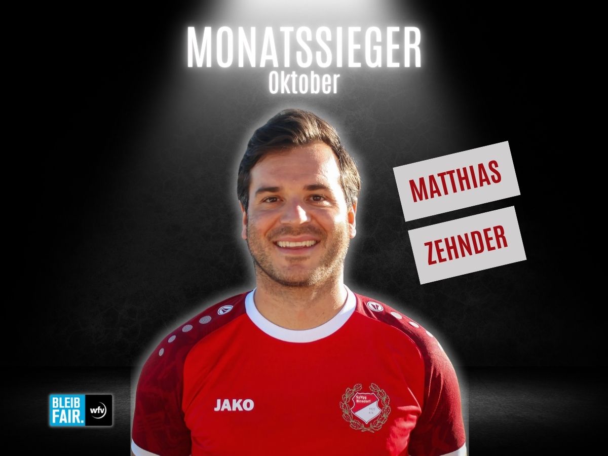 Gelebte Fairness auf dem Platz zahlt sich aus: Mit 300 Stimmen wurde Matthias Zehnder von der SpVgg Binsdorf zum Fairplay-Monatssieger Oktober gewählt.