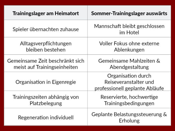 Trainingslager am Heimatort | Sommer-Trainingslager auswärts