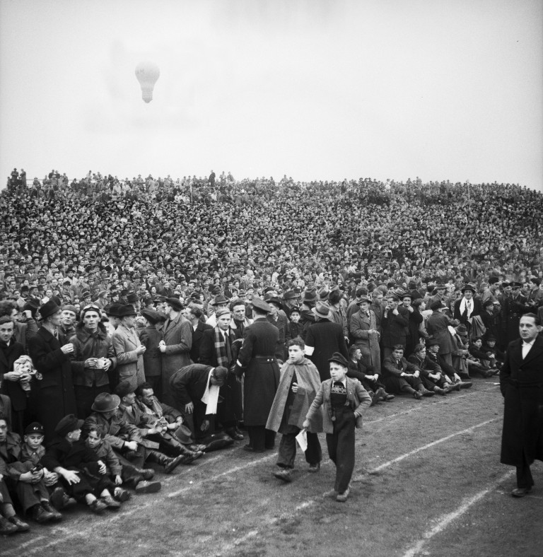 Trümmerberge prägen das Stadtbild, die Stromversorgung reicht kaum für die „Illumination“ der Stadt aus, die Verkehrssituation ist chaotisch. Das erste Länderspiel nach Ende des Zweiten Weltkrieges findet am 22. November 1951 in Stuttgart statt. 97.874 Eintrittskarten werden gedruckt. Weit über 100.000 Menschen drängen sich ins völlig überfüllte Neckarstadion, um den Auftritt der DFB-Elf gegen die Schweiz sehen zu können.