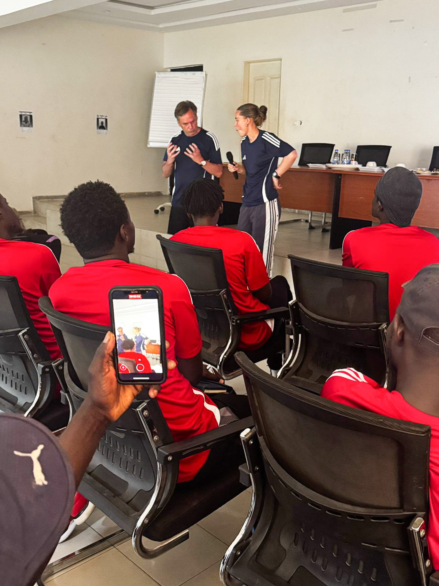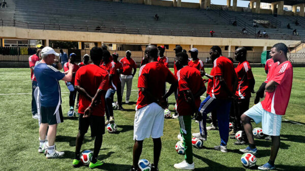 Den zweiten Besuch unternahmen Norbert Stippel, Dolmetscherin Fiona Sieler und Jens-Peter Schuller in den Tagen rund um Ostern 2026. Rund 20 angehende Trainer meldeten sich für den Lehrgang an, der Theorie und Praxis gleichermaßen beinhaltet. Während die Einheiten zur Trainingslehre und Persönlichkeitsentwicklung im örtlichen Rathaus stattfanden, wurde auf dem Platz im Stadion des Dakarer Stadtteils Parcelles intensiv gearbeitet.